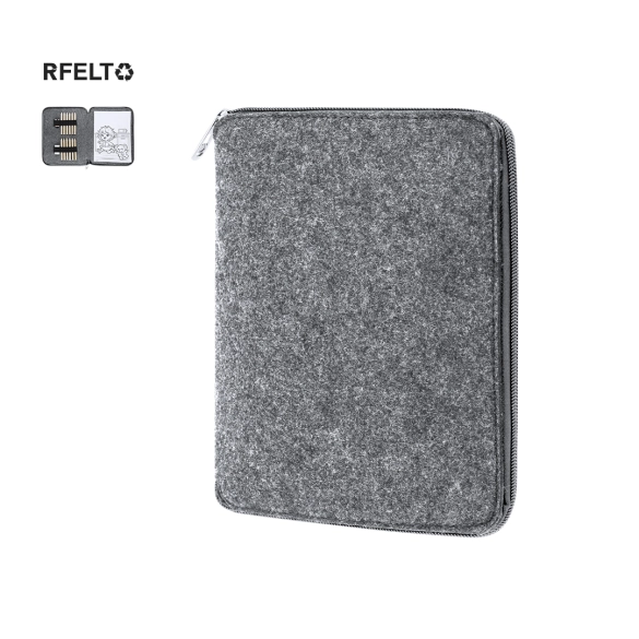 Set de crayons de couleur dans une trousse fabriquée en feutre RPET. Inclut 11 crayons de couleurs hexagonales, 1 gomme à effacer, 1 taille-crayon en bois et 60 feuilles avec des designs amusants en noir et blanc à colorier. Présenté dans une trousse pratique avec fermeture éclair en bicolore et intérieur avec des bandes élastiques pour organiser les accessoires. Avec label RPET.Le feutre RPET est le résultat de la combinaison du processus de recyclage des matériaux plastiques avec la technique millénaire de fabrication du feutre, donnant ainsi un matériau éco-tendance qui, en plus d'être d'origine recyclée, est également recyclable.