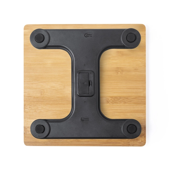 Échelle de la ligne nature en bambou, avec base antidérapante. Affichage numérique, avec fonctions d’arrêt automatique, de température, de tare et de sélection de l’unité de pesage. Puissance de la batterie (2xAAA non inclus). Présenté dans une jolie boîte d’éco-conception.