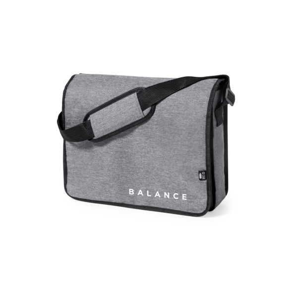 Sac à bandoulière en polyester RPET 600D résistant. Entièrement rembourré, avec large rabat avant, fermeture velcro et garniture noire. Compartiment principal avec doublure intérieure, avec bandoulière réglable et rembourrage aux épaules. Avec RPET distinctif sur létiquette extérieure.