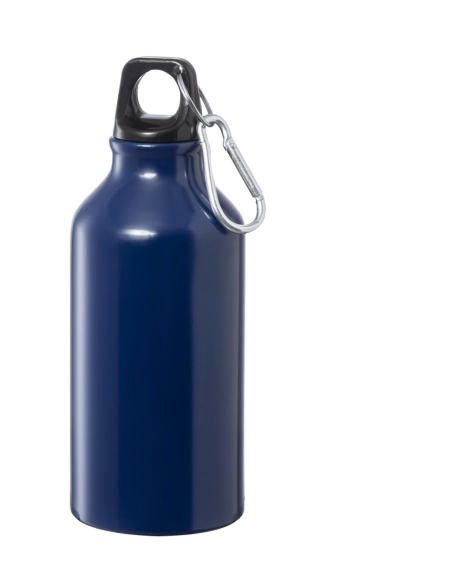 Bouteille en aluminium (simple paroi) de 400ml avec mousqueton, bouchon de sécurité à vis. Présentée dans un coffret individuel. Dimensions: 17,5 x Ø 6,6cm.