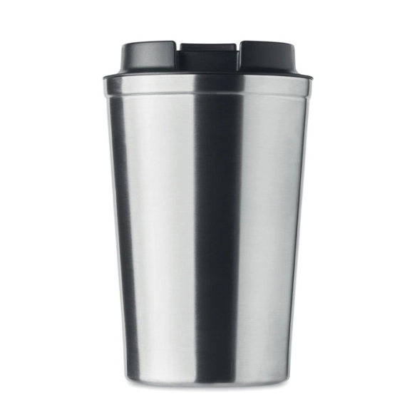 Gobelet en acier inoxydable à double paroi avec couvercle en PP. Emportez votre café, thé ou autre boisson chaude préférée avec vous grâce à ce gobelet. Contenance : 350 ml. Anti-fuite.