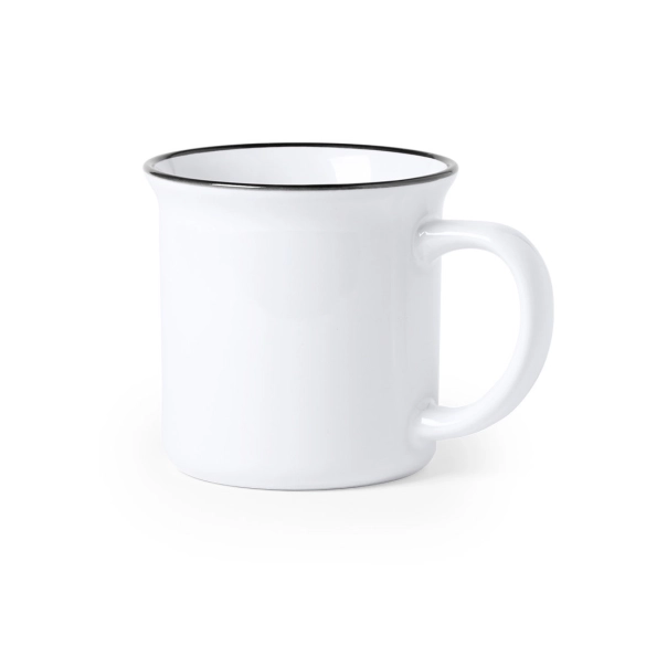 Mug au design vintage, en céramique d´une capacité de 300ml. Bicolore et élégant grâce à son liséré coloré sur le bord de la tasse et son corps blanc. Spécialement conçue pour le marquage en sublimation. Passe au lave-vaisselle et au micro-onde. Présentée dans une boîte individuelle.