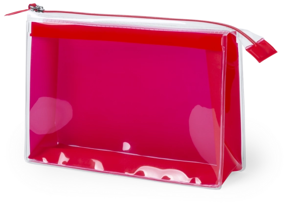 Trousse multiusages en matériau EVA résistant et translucide, sans PVC. Avec fenêtre transparente, fermeture éclair assortie et finition thermosoudée. Poignée en ruban assorti.