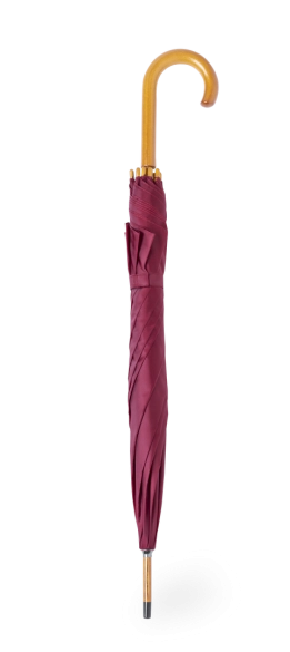 Parapluie à 8 panneaux et 105 cm de diamètre, en polyester 190T résistant. Ouverture automatique, avec poignée courbée et canne en bois. Armature métallique noire, bande avec fermeture velcro et disponible dans une large gamme de couleurs.