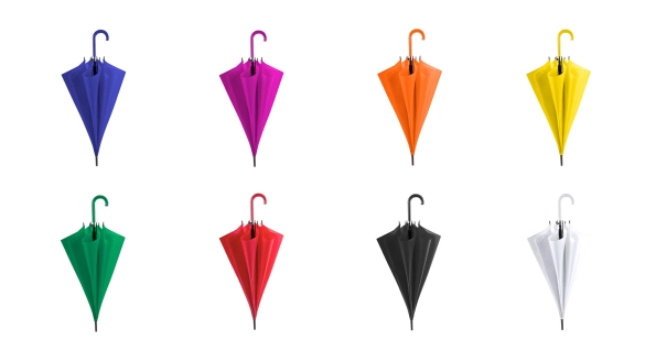 Parapluie à 8 panneaux dans une large gamme de couleurs vives et dun diamètre de 105 cm. Ouverture automatique, en matériau polyester résistant, avec des baguettes métalliques en couleur noires et une poignée assortie.
