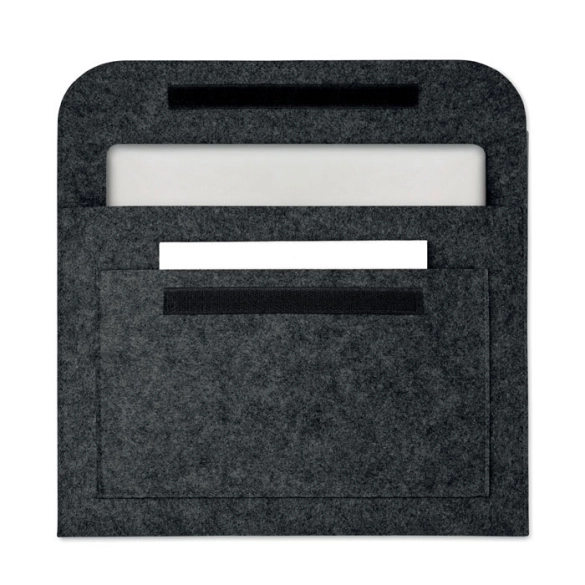 Pochette en feutrine pour ordinateur portable 15 pouces. Feutrine d'une épaisseur de 2 mm, avec poche frontale et fermeture autoagrippante. Dimensions: 37x26cm.