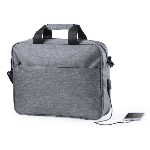 Porte documents de sécurité, avec design urbain en polyester 300D durable. Poche intérieure avec protection de sécurité RFID (Radio Frequency Identification) qui assure la sécurité des données de carte et d autres appareils. Poignées de protection et compartiment principal avec fermeture éclair. Connexion USB -powerbank non comprise-, avec poches intérieures rembourrées pour ordinateurs portables jusqu à 15 pouces et tablettes jusqu à 10 pouces. Sangle d épaule réglable avec protecteur rembourré.