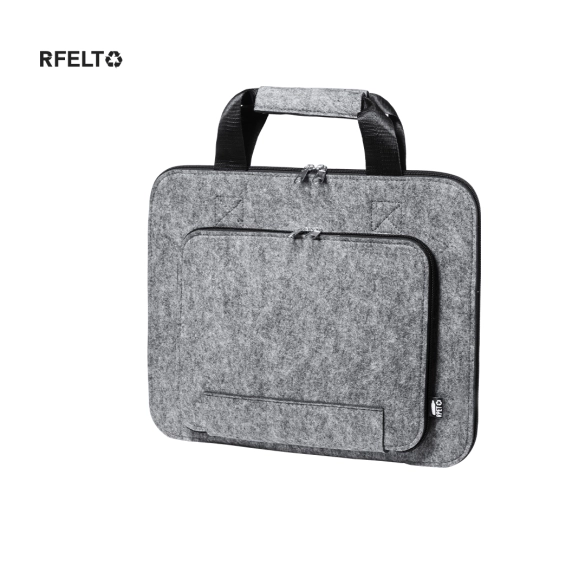 Porte-documents de la ligne Nature et en feutrine RPET recyclé résistant, résultat de la combinaison du processus de recyclage des matières plastiques avec la technique millénaire de fabrication de la feutrine, résultant en un matériau éco-tendance qui, en plus d’être d’origine recyclée, devient également recyclable. Poches principales et avant avec fermetures à glissière et poignées en métal, avec poignées renforcées assorties et badge RPET sur l’étiquette extérieure.