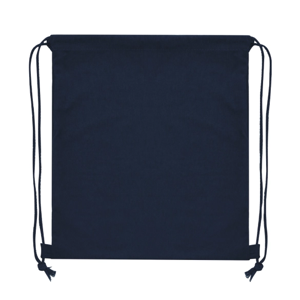 Sac à dos à cordes en velours côtelé de polyester résistant. Fini cousu, avec cordes assorties et renforts latéraux. Disponible dans une gamme de couleurs variées.