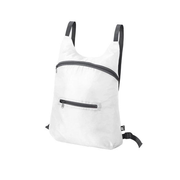 Sac à dos pliable en polyester RPET 201D souple, fabriqué à partir de plastique recyclé, pour encourager la réutilisation des déchets plastiques et contribuer à la durabilité de la planète. Avec fermeture zippée et poche avant. Coins renforcés, bretelles réglables et accessoires en gris. Petit format plié, avec ceinture de transport et disponible dans une large gamme de couleurs. RPET distinct sur l etiquette.