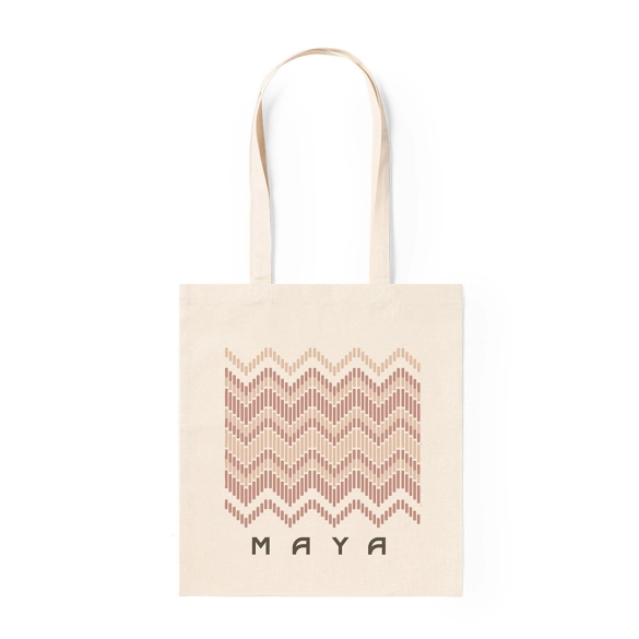 Sac en matière 100% coton avec finition en couleur naturelle. Avec poignées longues de 70cm et finition cousue. Résistance jusqu’à 7kg de poids.