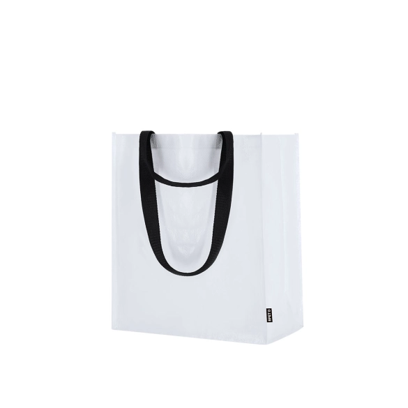 Sac fabriqué en PP tissé laminé RPET. Équipé de doubles poignées renforcées : poignées courtes de 40x3 cm et longues de 70x3 cm. Avec résistance jusqu'à 8kg.Le matériau RPET est fabriqué à partir de plastique recyclé, pour ainsi favoriser la réutilisation des déchets plastiques et aider à la durabilité de la planète.