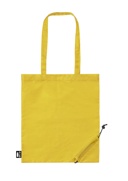 Sac pliant de la ligne Nature en RPET 190T. Avec une finition cousue et de longues anses renforcées (70 x 2,5 cm). Pliage petit format par cordon avec accessoire de réglage. Disponible dans une large gamme de couleurs, avec le logo RPET sur létiquette extérieure. Résistance jusquà 8 kg de poids.Le matériau RPET est fabriqué à partir de plastique recyclé, afin de favoriser la réutilisation des déchets plastiques et daider à la durabilité de la planète.