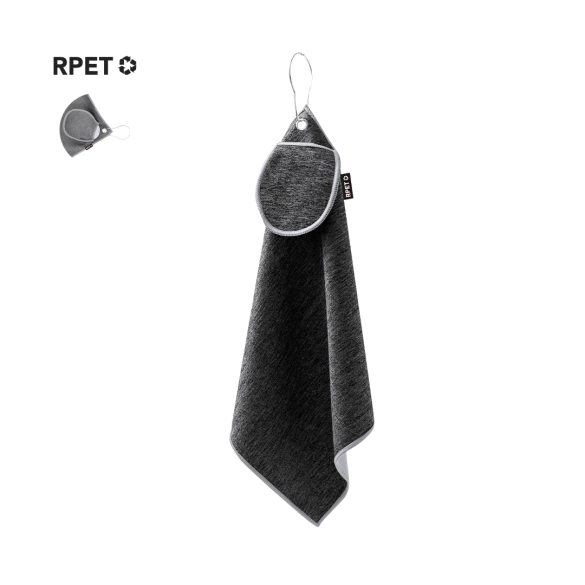 Serviette de golf fabriquée en RPET avec double texture : finition douce bicolore d'un côté et texture de fil uniforme de l'autre, pour s'adapter à différents besoins de nettoyage. Son design comprend une poche pour les balles de golf assortie. Avec anneau renforcé et mousqueton de fixation. Inclut un badge RPET sur l'étiquette.Le matériau RPET est fabriqué à partir de plastique recyclé, pour ainsi favoriser la réutilisation des déchets plastiques et aider à la durabilité de la planète.