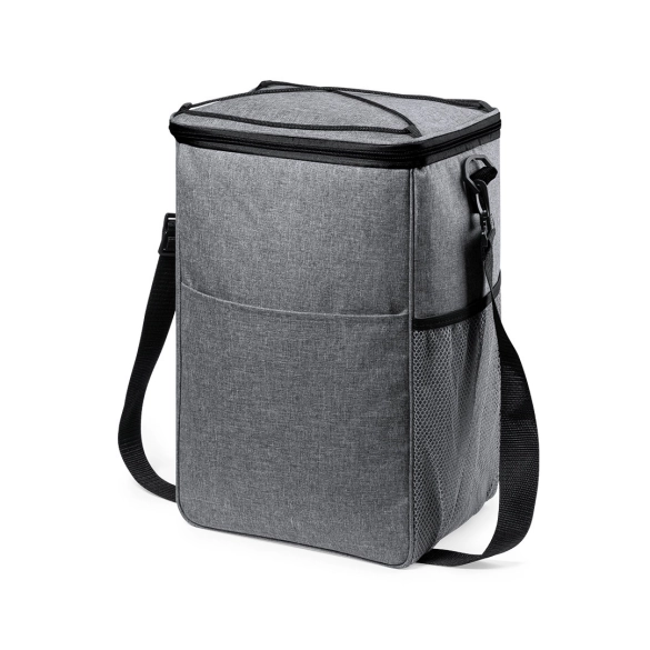 Ensemble barbecue avec 3 accessoires. Il comprend: Sac de transport / glacière en polyester RPET 300D résistant, fabriqué à partir de plastique recyclé, afin de favoriser la réutilisation des déchets plastiques et daider à la durabilité de la planète. Avec bandoulière réglable avec attache mousqueton et intérieur isotherme en PEVA, pour préserver la température des aliments. RPET distinctif sur létiquette extérieure. spatule, pince et broche en métal.