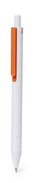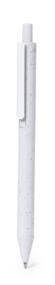 Stylo à bille à bouton-poussoir en ABS recyclé. Avec clip de couleurs vives et corps avec une finition lisse en blanc uni. ABS recyclé distinctif sur le dessus du stylo. A lencre bleue.