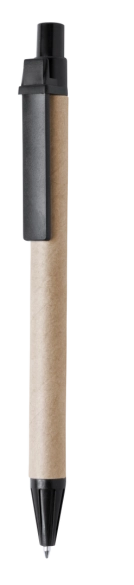 Stylo à bille à bouton-poussoir en mélange de carton recyclé couleur naturelle pour le corps et attributs de couleurs vives. Encre noire.