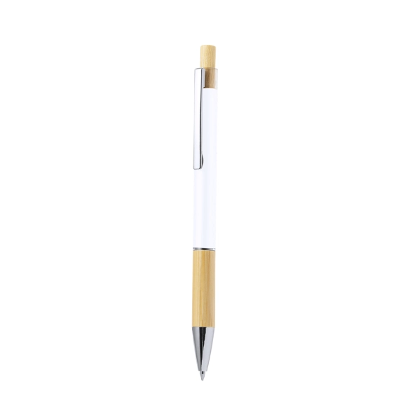 Élégant stylo à bille en bambou et aluminium avec bouton-poussoir. Corps en aluminium robuste, finition brillante et poignée en bambou, avec la canne dans une large gamme de couleurs distinctives. Clip métallique, avec bouton-poussoir en bambou rétractable et encre bleue. Présenté dans un sac individuel recyclé.Des matériaux tels que le bambou encouragent l’utilisation de matières premières naturelles en réduisant les émissions polluantes. Il provient d’une plante très résistante et polyvalente, avec une croissance et une régénération rapides, étant une excellente alternative à l’utilisation du bois traditionnel.