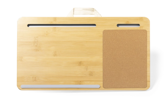 Tapis organisateur multifonctionnel de la ligne Nature. Il est fait de bambou et de liège naturel, contribuant à la durabilité de la planète. Comprend des supports pour ordinateurs portables, tablettes et autres appareils mobiles. Avec tapis de souris soft-touch intégré. De plus, il intègre un rembourrage pour les genoux, facilitant son utilisation pendant de longues périodes de manière confortable. Comprend une poignée de transport pratique.