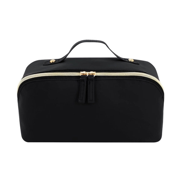 Trousse en PU doux, avec un compartiment principal à large ouverture. Avec des tirettes en PU assorties et une fermeture éclair de couleur dorée. Intérieur avec double compartiment et poche supplémentaire avec fermeture éclair.