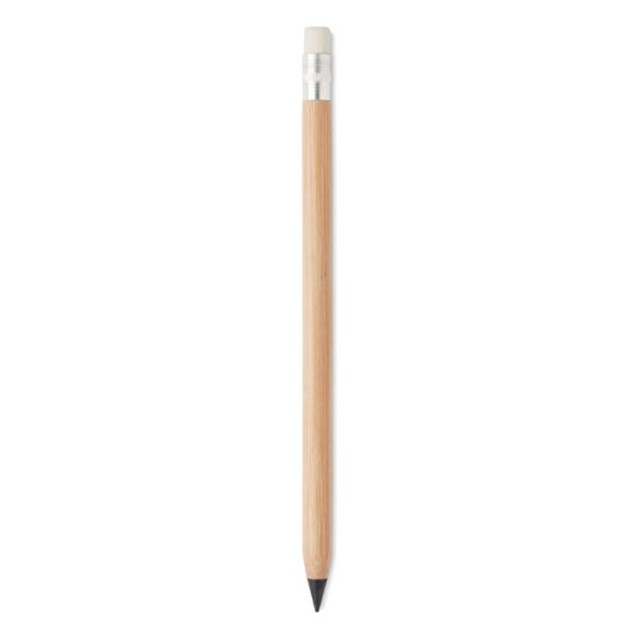 Stylo crayon Eternal 2-en-1, en bambou, avec un corps au fini lisse et des accessoires chromés. Doté dune fermeture à capuchon avec une gomme et un stylet à chaque extrémité, il comprend un stylo à bille à une extrémité (recharge jumbo et encre bleue), et un éternel crayon à lautre extrémité, afin de toujours utiliser le même crayon et de ne pas générer de déchets. Présenté dans une housse 100% coton, avec cordon de serrage.