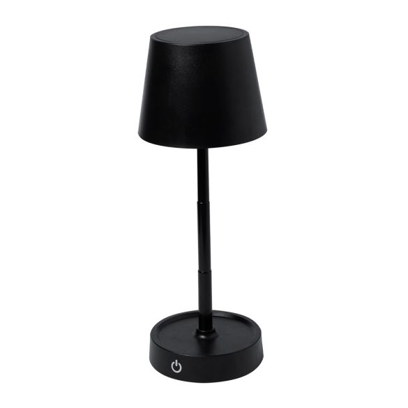 Lampe de design en finition noire mate. Inclut un système de régulation d'intensité lumineuse tactile et un corps pliable pour ajustement en hauteur. Équipée d'une batterie rechargeable de 800mAh par USB Type C -câble inclus- et 12 LEDs de lumière chaude. Avec bouton marche/arrêt à l'arrière.