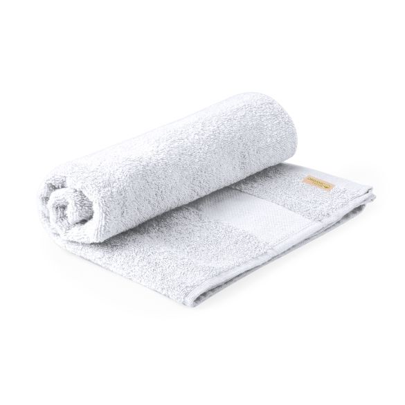 Serviette en 70% coton recyclé et 30% polyester recyclé, 300 gr/m². 70x140 cm. Fabrication UE.