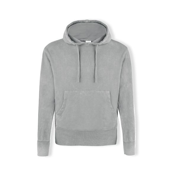 Sweat-shirt unisexe avec capuche et tissu effet jean délavé, ce qui rend chaque pièce unique et irremplaçable. Poche kangourou et élastiques extra-larges pour un ajustement parfait. Détail contrastant aux poignets et à lourlet élastiques. Fabriqué en 100% coton peigné dun poids de 280g/m2. Toucher doux et coupe moderne. Lacets et œillets plats réglables, évitant ainsi lutilisation de métal. Coutures doubles pour une plus grande durabilité et résistance à un usage intensif. Étiquette facilement amovible. Disponible en tailles XS, S, M, L, XL et XXL.